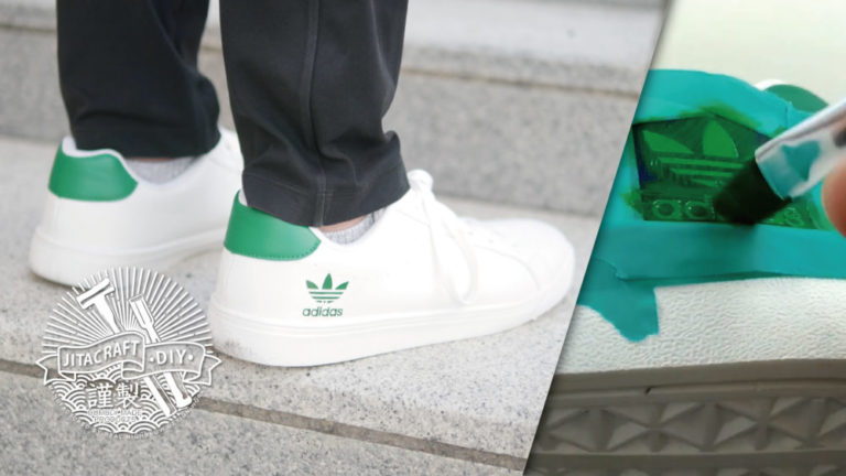 1500円で買った ”adidas風” のスニーカーにadidasロゴをペイント…