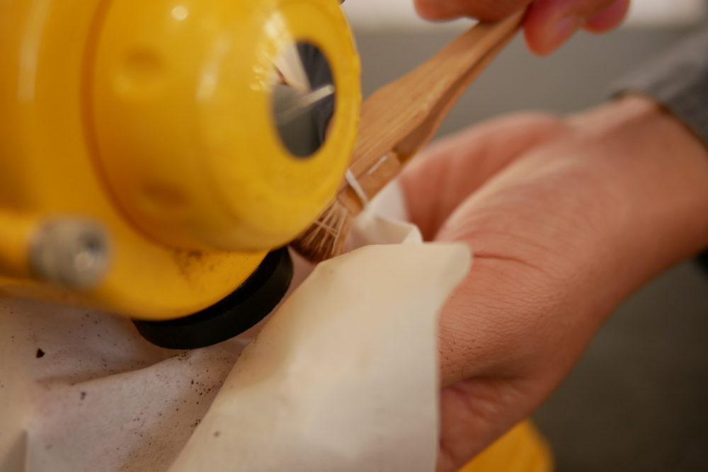 後は丁寧にブラッシングで目に詰まった粉を落としていきます。